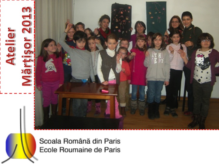 Le 24 février 2013, les élèves de l’École Roumaine de Paris ont célébré le Mărțișor à travers un atelier dédié à cette tradition roumaine ancestrale. Les enfants ont fabriqué des mărțișoare, ont découvert la signification des couleurs rouge et blanc et ont appris les légendes entourant ce symbole du printemps. Cette activité a permis aux enfants de découvrir les traditions roumaines, de développer leur créativité et de comprendre l’importance de la générosité et de la solidarité, en offrant aux êtres chers un signe d’affection et d’amitié.