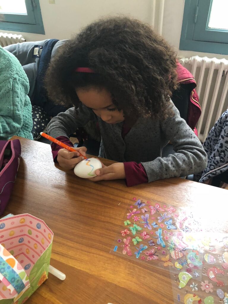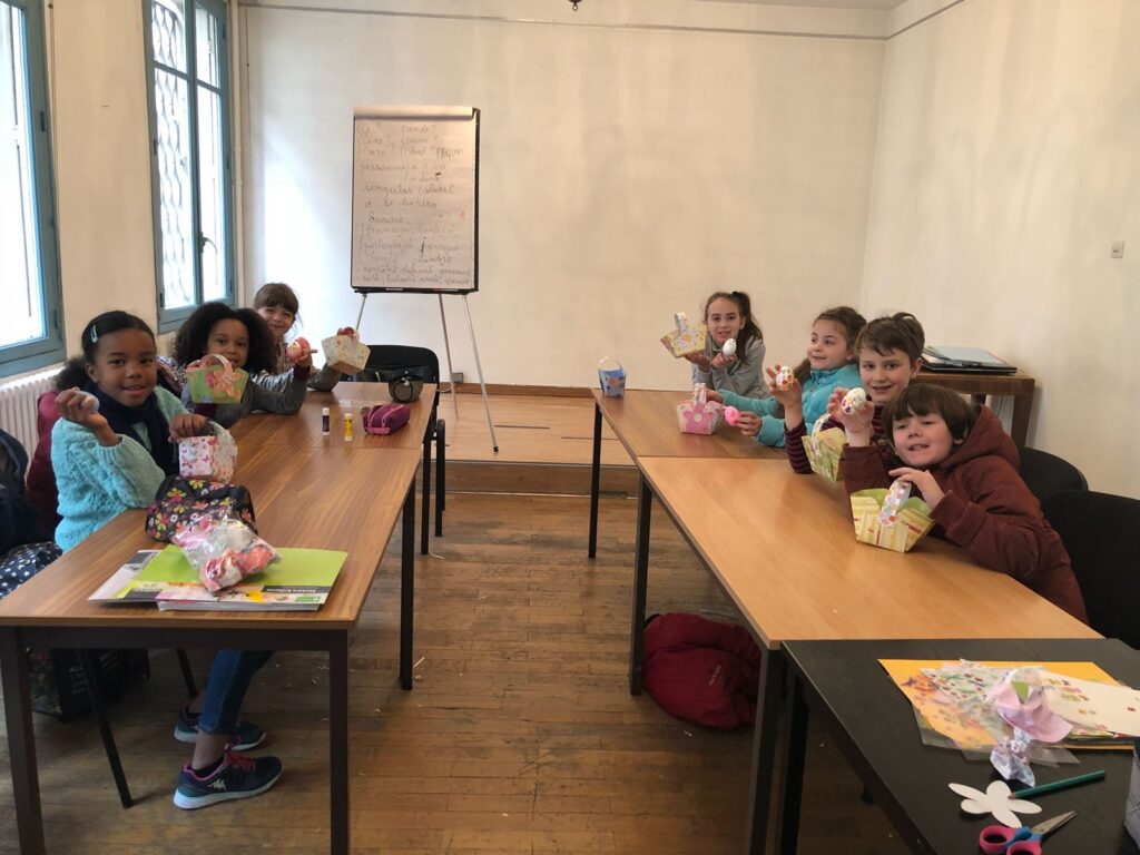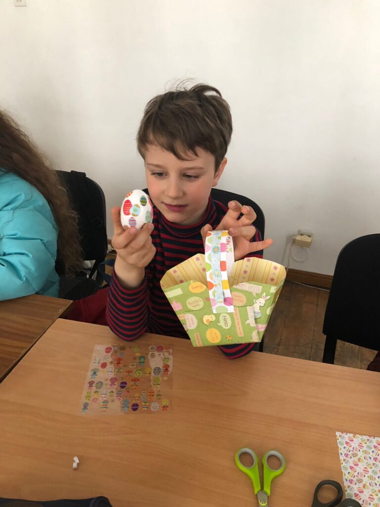 Au début du mois d’avril, les élèves de l’École Roumaine de Paris, accompagnés par les enseignants de chaque groupe, ont participé à un atelier de Pâques. Les enfants ont dessiné, colorié et décoré des œufs et des petits paniers, ont créé des cartes de vœux et des œufs en pâte à modeler, tout en découvrant et en discutant des traditions roumaines de Pâques. Cet atelier a permis aux élèves d’explorer la culture et les coutumes roumaines à travers une expérience créative et interactive.