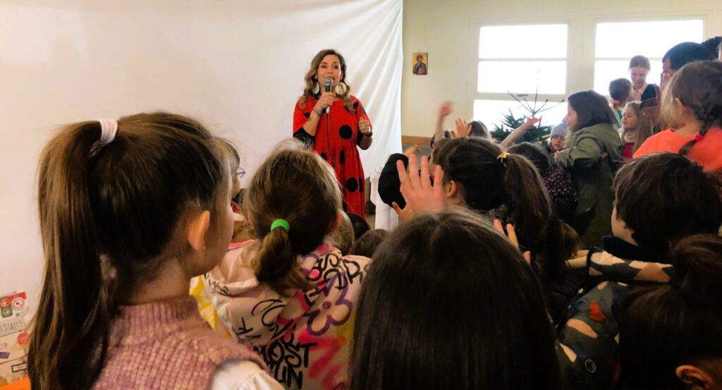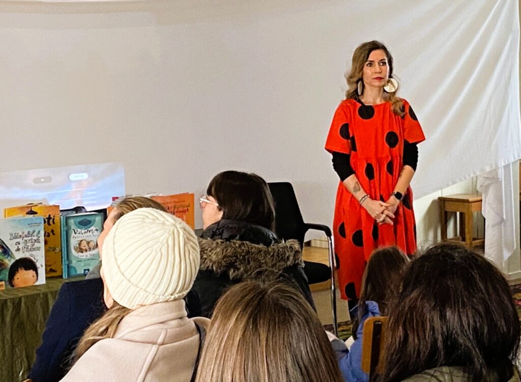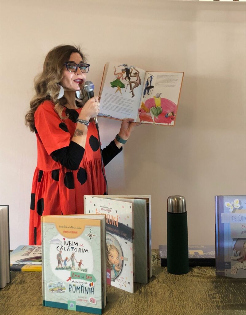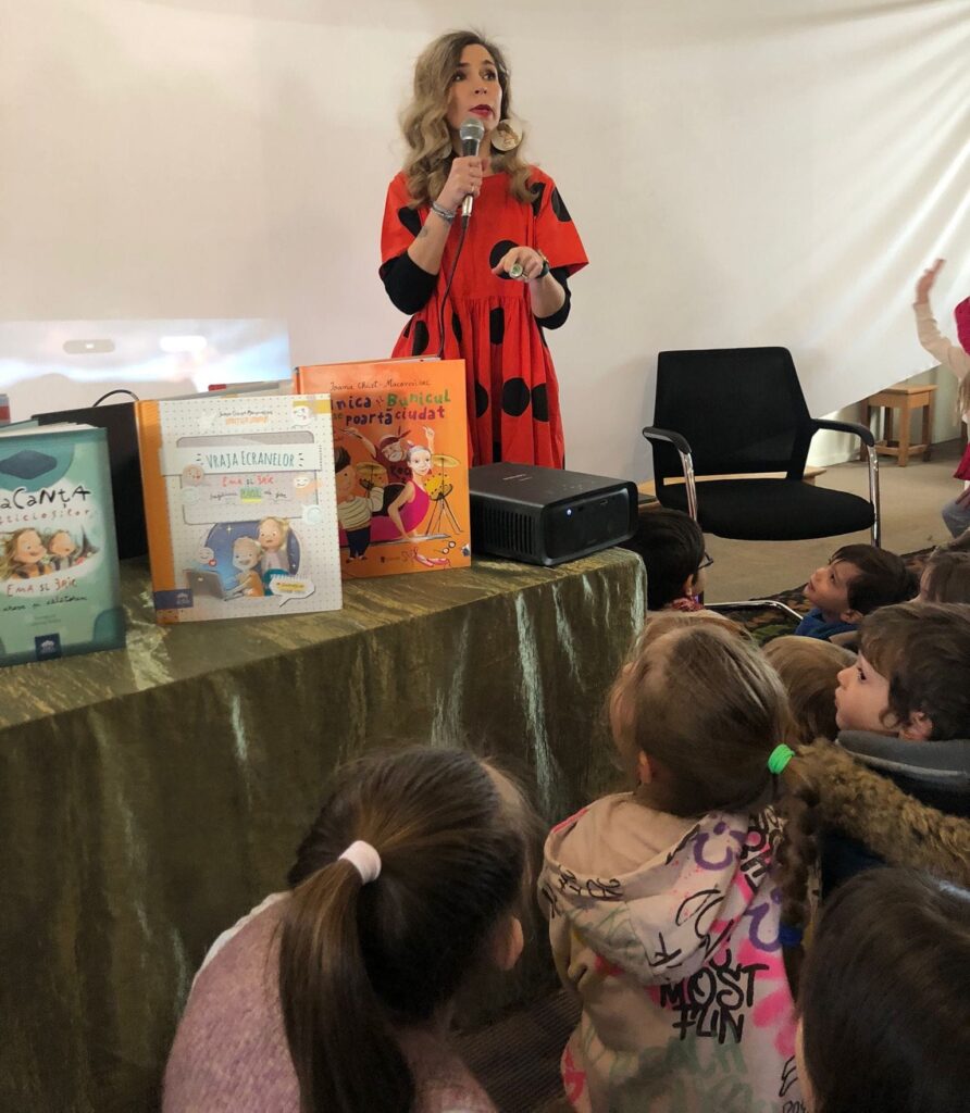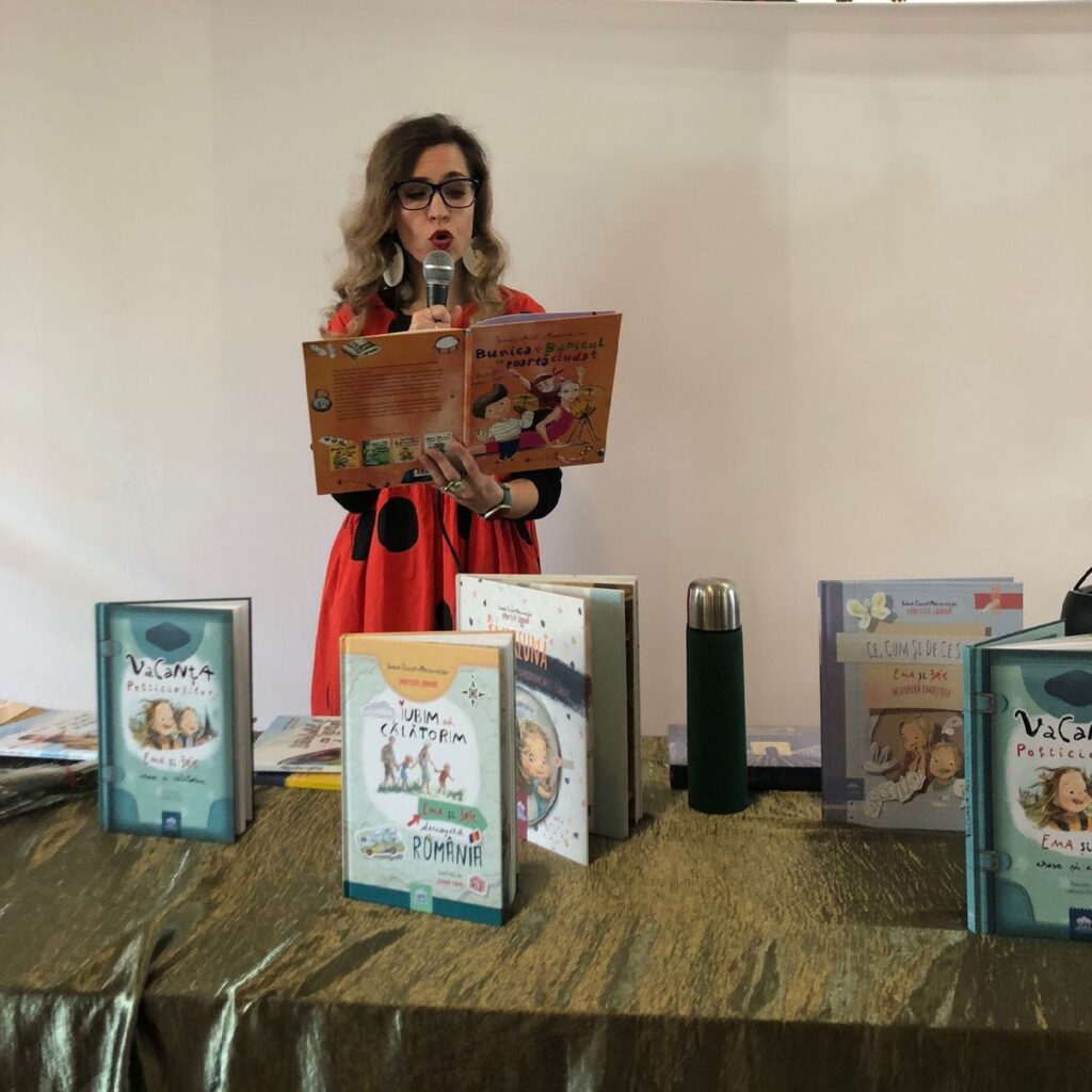 Les enfants ont feuilleté ses livres, pris des photos avec elle et même pratiqué le yoga. Ils ont ensuite voté pour le livre que Ioana leur a lu : « Bunicul și bunica se poartă ciudat ». Nous avons beaucoup ri en écoutant les aventures d’un couple de grands-parents pour le moins atypiques, passionnés de ballet, de motos et de réseaux sociaux.