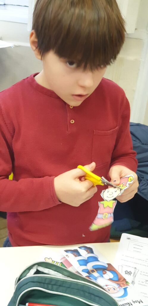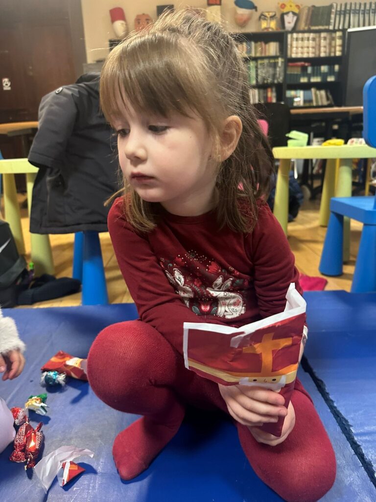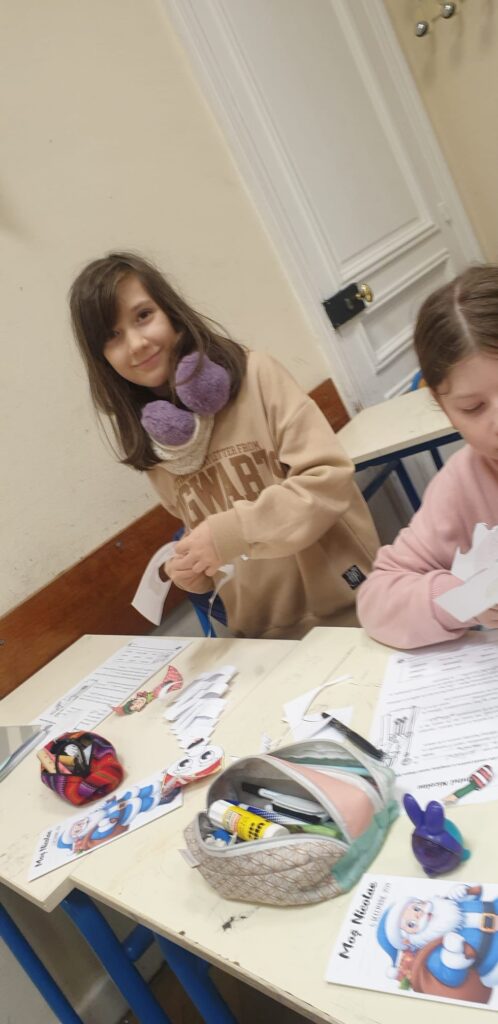 • Groupe 6-8 ans : Ils ont lu une histoire sur le mystère de la nuit du 6 décembre et ont discuté de la coutume de préparer les bottes. Ils ont travaillé sur une fiche spéciale représentant une petite botte, coloriant des mots thématiques en fonction du nombre de syllabes. Les enfants ont également écouté un reportage sur les traditions de Saint Nicolas dans divers pays européens, identifiant ces pays sur la carte. À la fin, chacun a reçu un petit cadeau délicieux – un bonhomme en chocolat – et beaucoup de sourires.