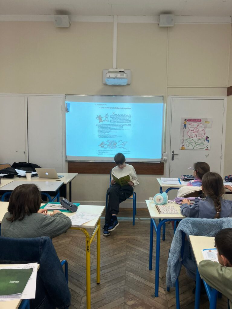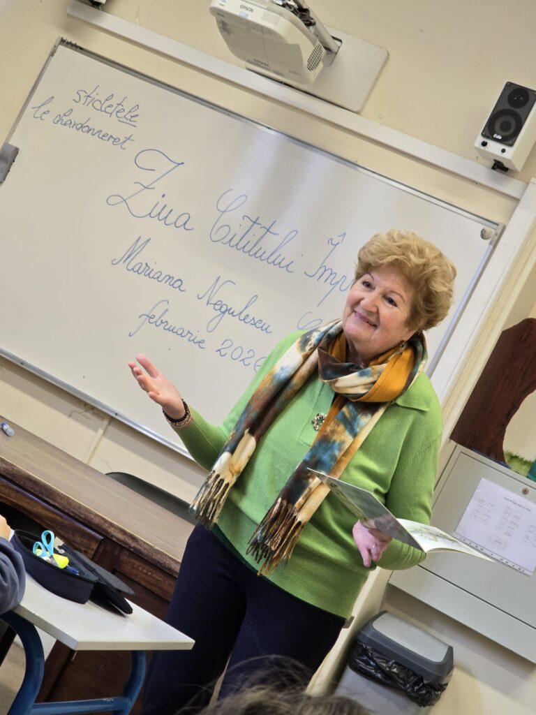 Un moment tout à fait spécial a eu lieu dans la classe des Téméraires, où Madame Mariana Cojan-Negulescu – écrivaine, traductrice et docteure ès lettres – a lu aux enfants l’un de ses livres bilingues, « L’Histoire du chardonneret ».