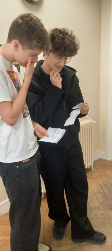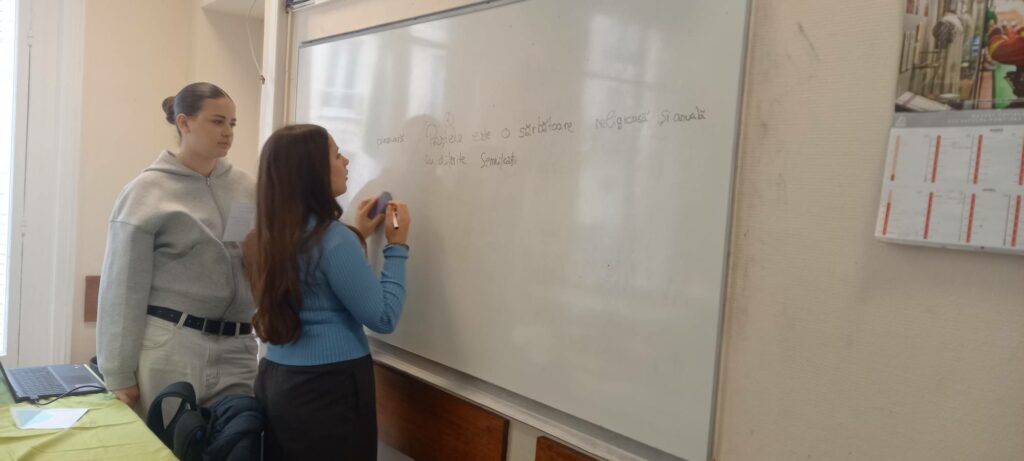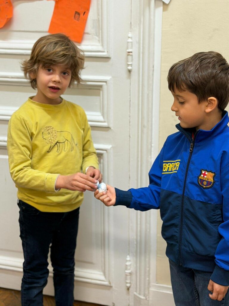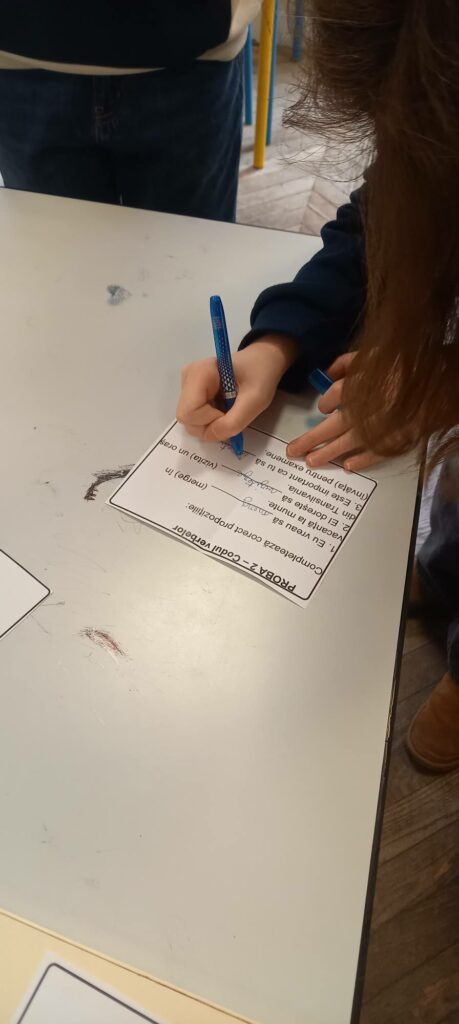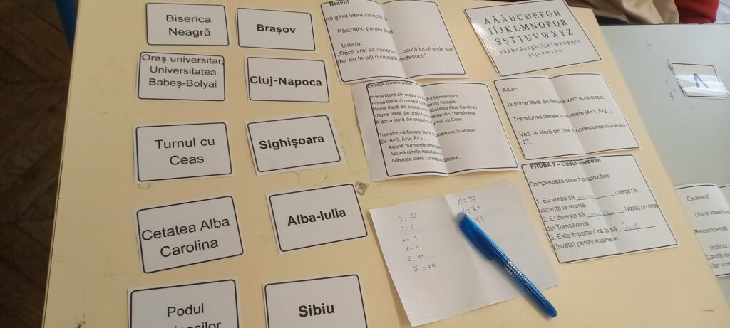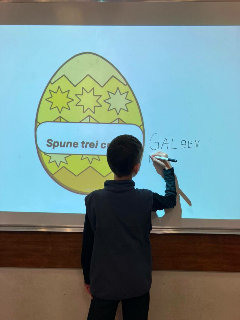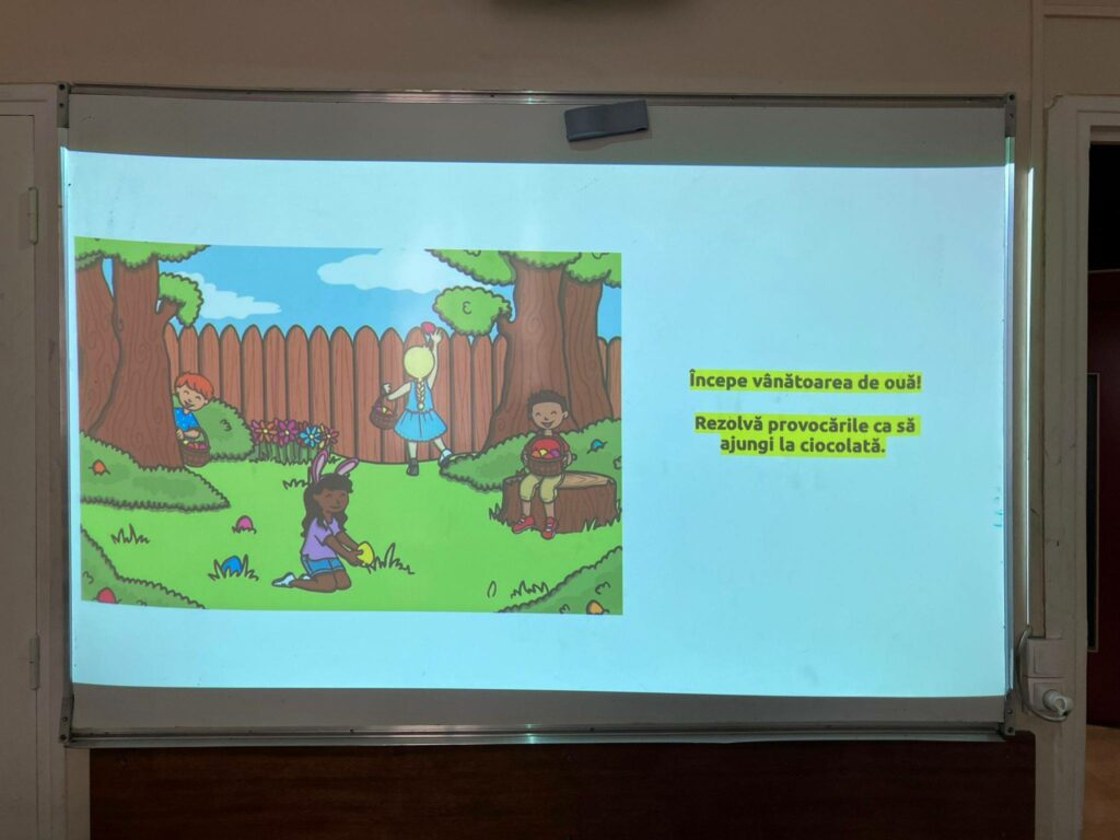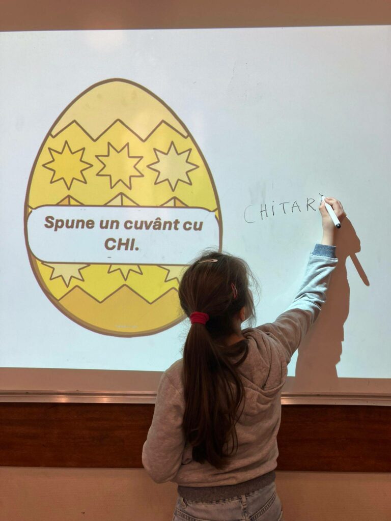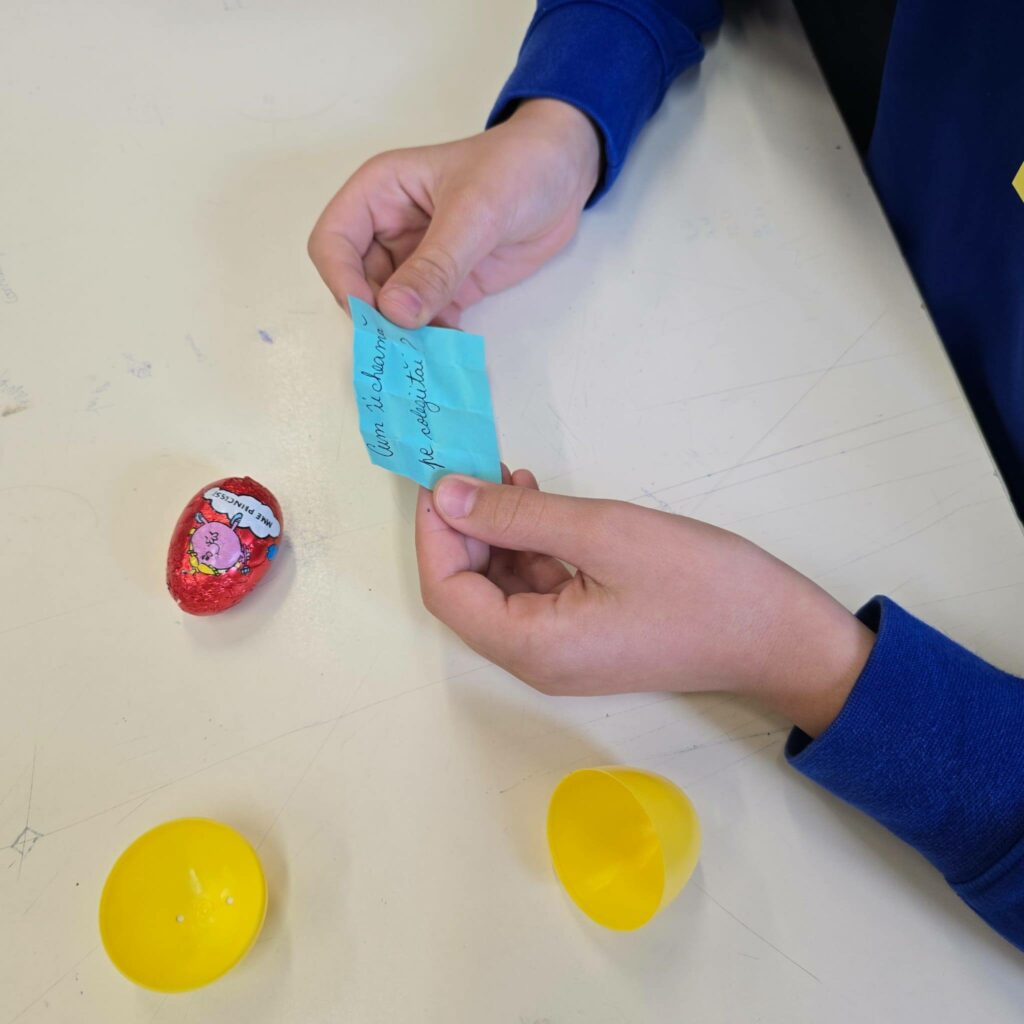 Les élèves les plus grands ont pris part à une activité plus élaborée : une chasse aux trésors intégrant des épreuves de grammaire, de culture et de civilisation roumaine. Grâce à la collaboration et à la réflexion, ils ont découvert le mot-clé « Înviere » (Résurrection), qui les a menés à la récompense finale.