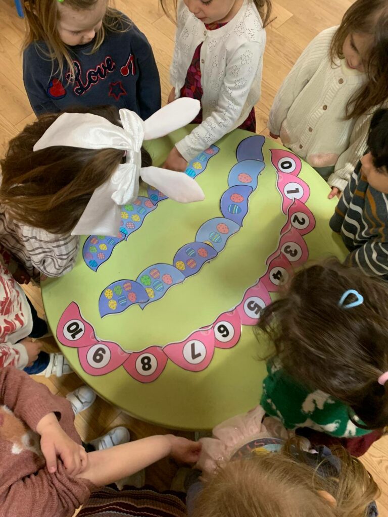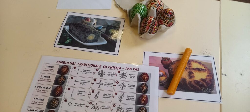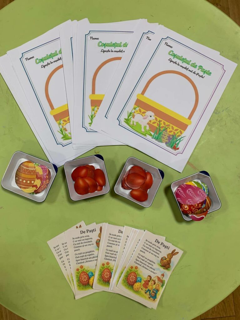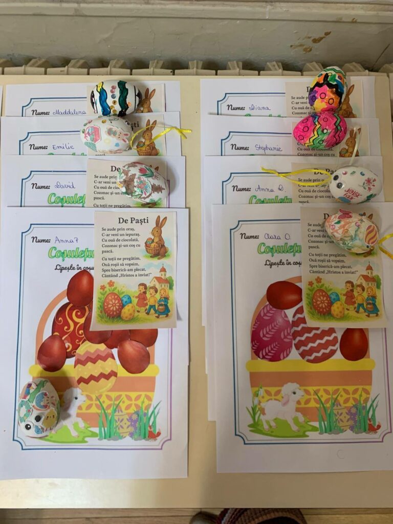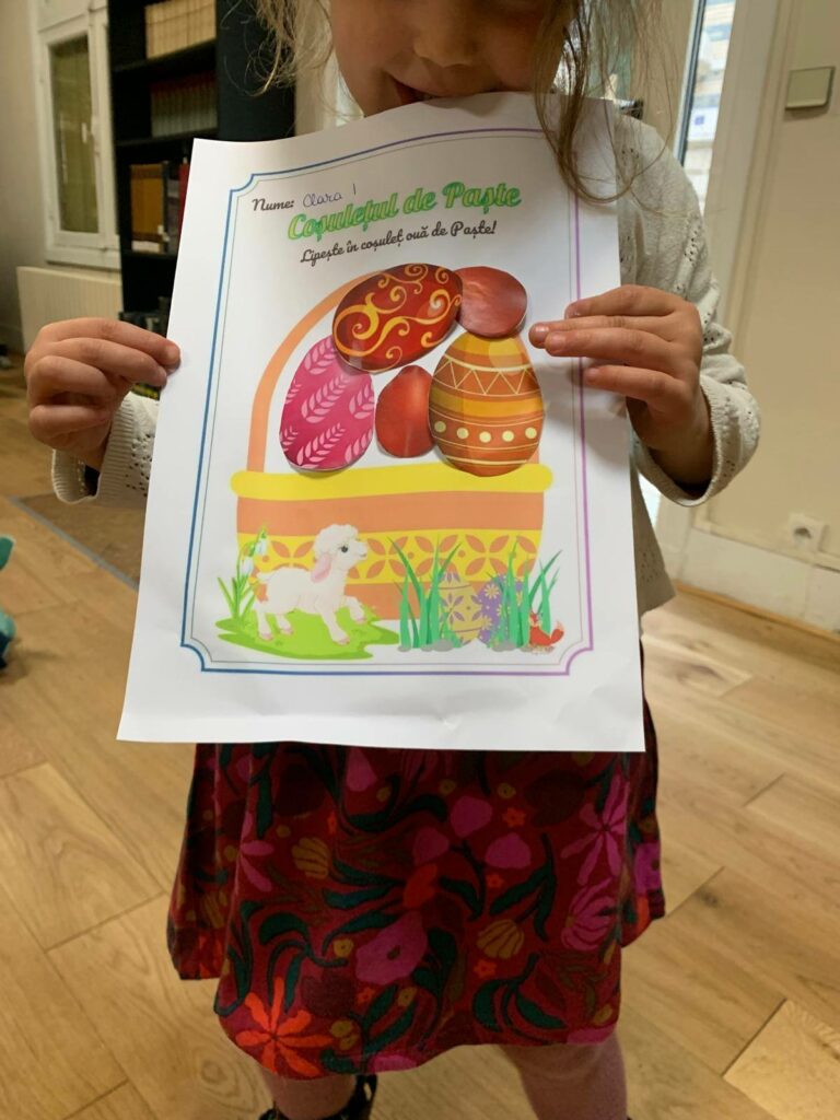 les « Albinuțele » ont participé à une chasse aux trésors autour des œufs de Pâques, en relevant des défis liés au vocabulaire, aux couleurs, aux formes, aux animaux, aux villes de Roumanie et aux spécialités traditionnelles.