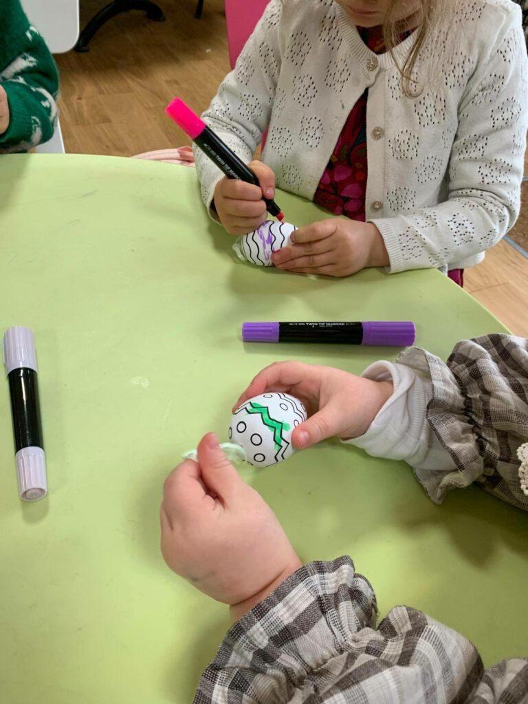 les plus petits ont rempli des paniers d’œufs, récité le poème « De Paște », exploré les nombres à travers des jeux mathématiques et décoré des œufs aux couleurs printanières.